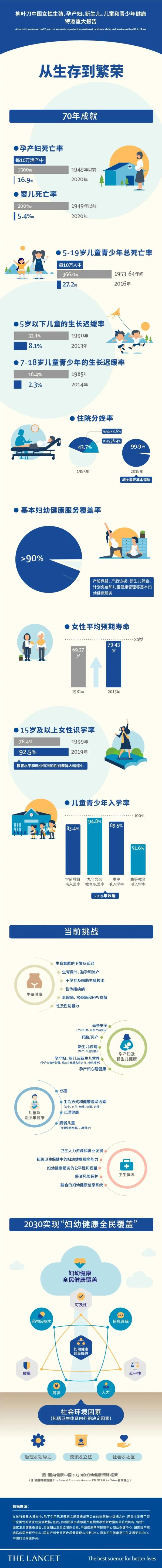 5月25日,《柳叶刀》在线发表《柳叶刀中国女性生殖、孕产妇、新生儿、儿童和青少年健康特邀重大报告》(以下简称报告),总结了新中国成立70年以来,在女性生殖、母婴、儿童及青少年健康领域取得的巨大成就。