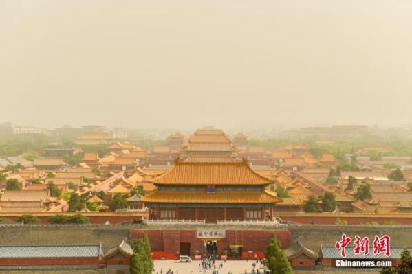 5月6日,北京故宫博物院笼罩在沙尘中。中新社记者 田雨昊 摄