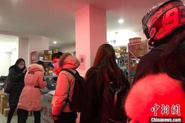 资料图:消费者在某快递驿站排队取快递。