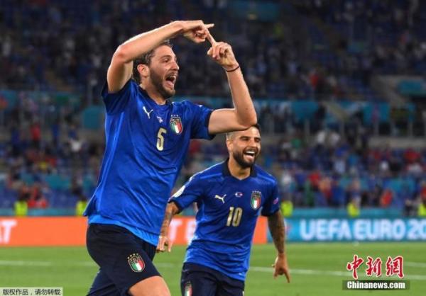 与比利时低沉士气形成鲜明对比的是,同样以三战三胜战绩锁定小组头名晋级淘汰赛的意大利队,在主帅曼奇尼的带领下配合日益默契和流畅,即便阵容已无从前那般星光熠熠,但攻防俱佳、锐气十足已经成为这支“平民”意大利队的标签。