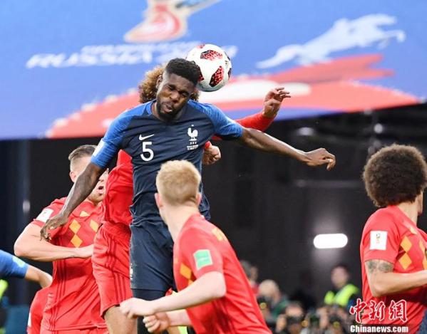 2018俄罗斯世界杯半决赛,法国1:0战胜比利时队。中新社记者 毛建军 摄