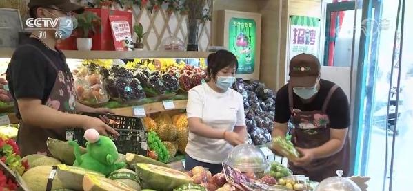 杨文凤介绍说,今年夏季水果的主要产区生产形势较好,不少果农扩大了种植规模,西瓜、葡萄连续增产、集中上市。目前他们店每天上货量1200公斤,比较上月增加20%以上,价格比较上月有15%—40%的降幅。