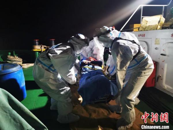 经过两个多小时的努力,伤员被顺利送往医院接受治疗,原载运船舶如期起航。