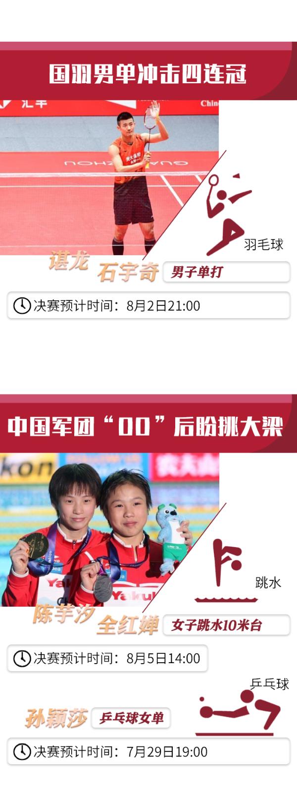 东京奥运中国军团的比赛咋看?"节目单"收好!