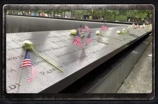 ▲ 纽约世贸大楼旧址已被两个巨大的纪念水池取代,水池外刻着在袭击中丧生的美国人名字