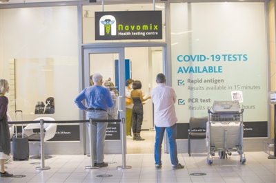 图为11月29日,旅客在南非开普敦国际机场等待接受新冠病毒检测。新华社发(弗克摄)