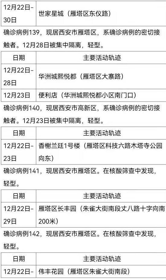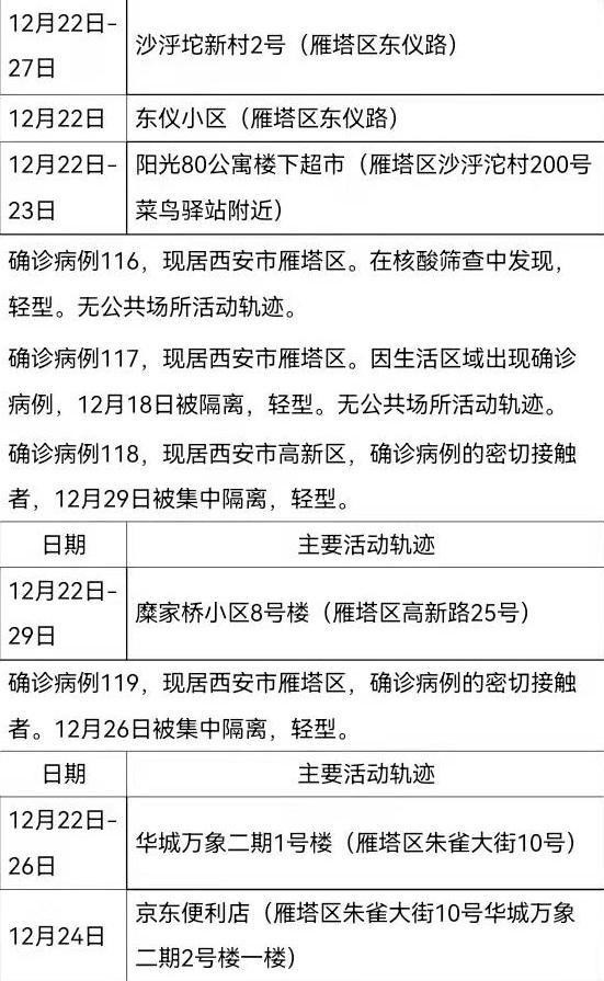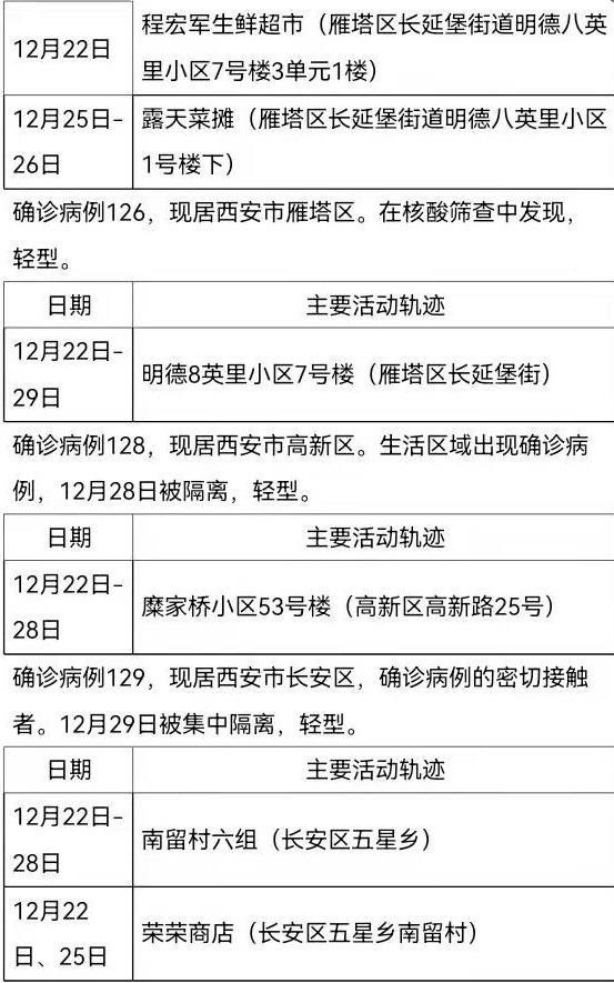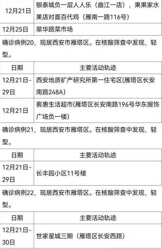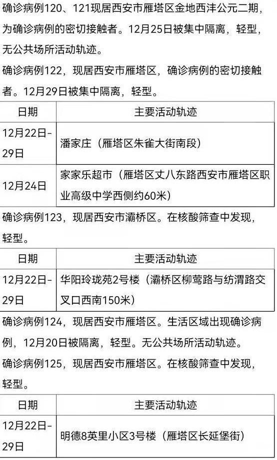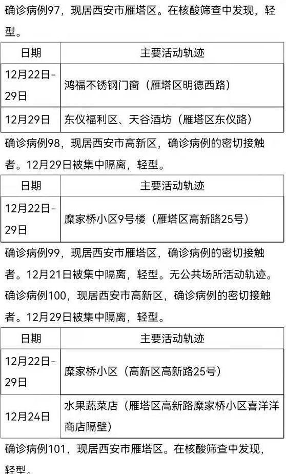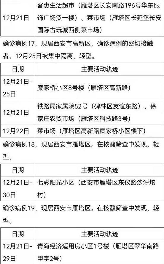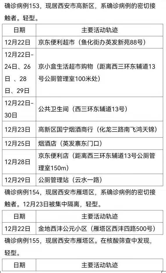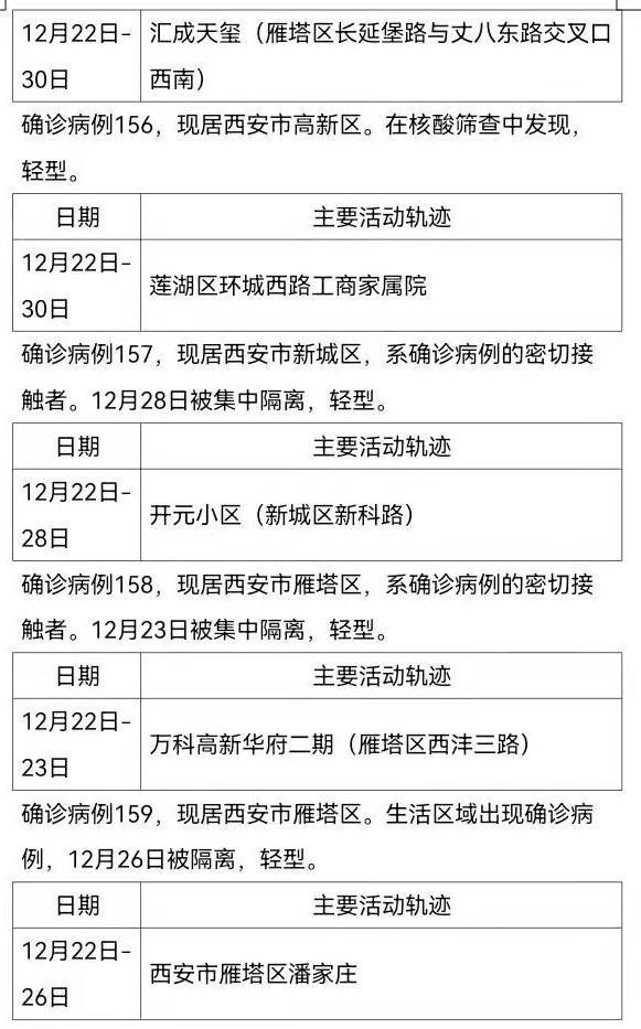 2022年1月1日,西安市公布2021年12月30日0到24时新增161例确诊病例的活动轨迹: