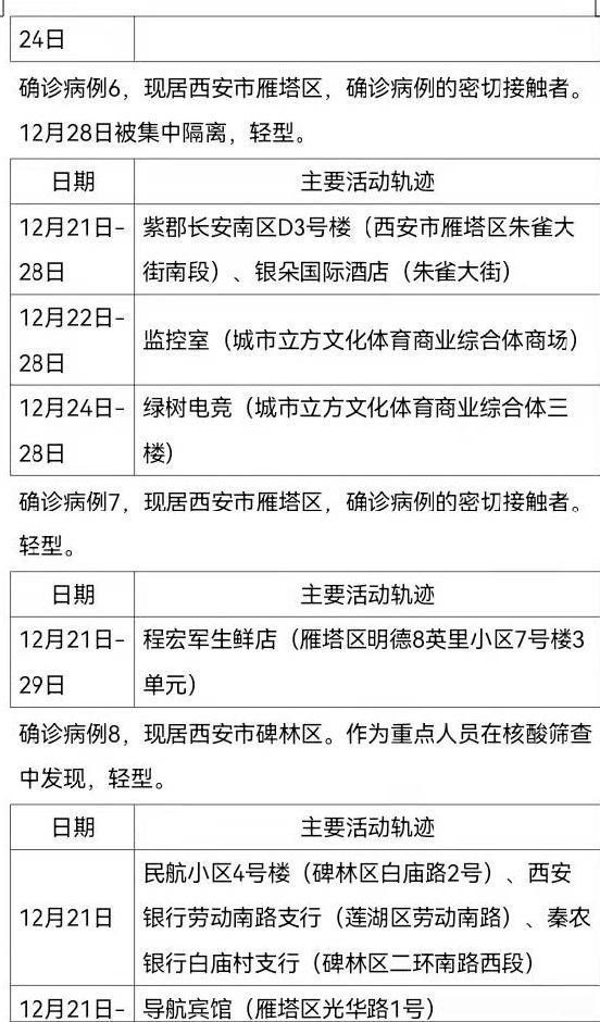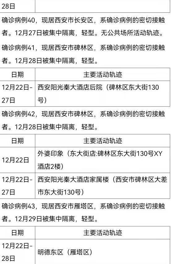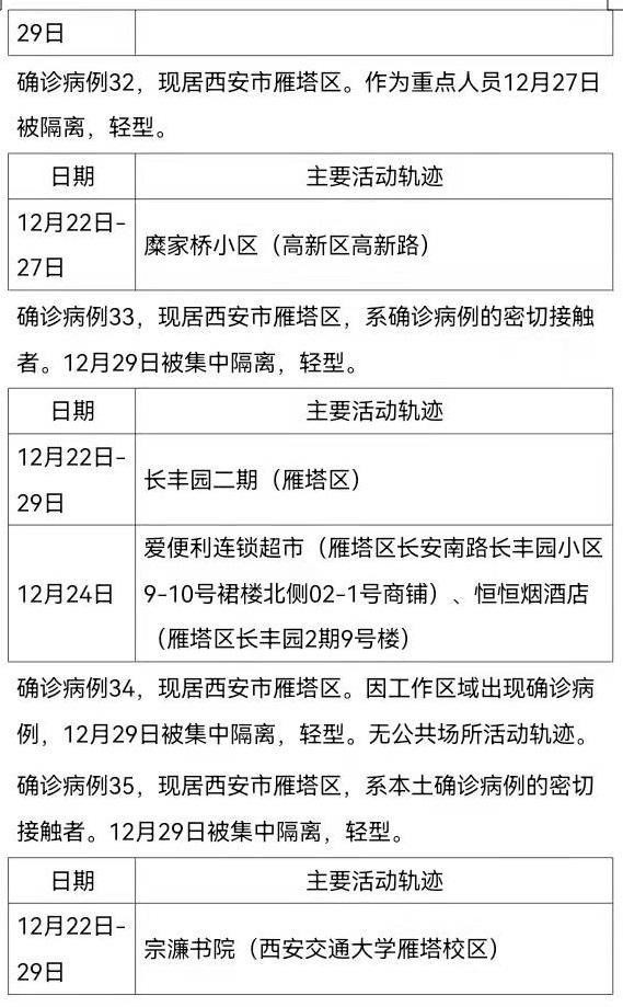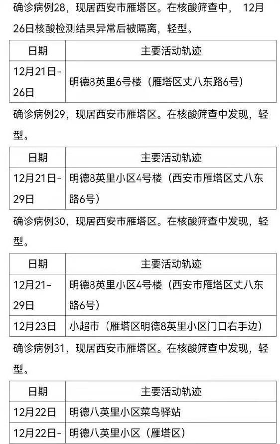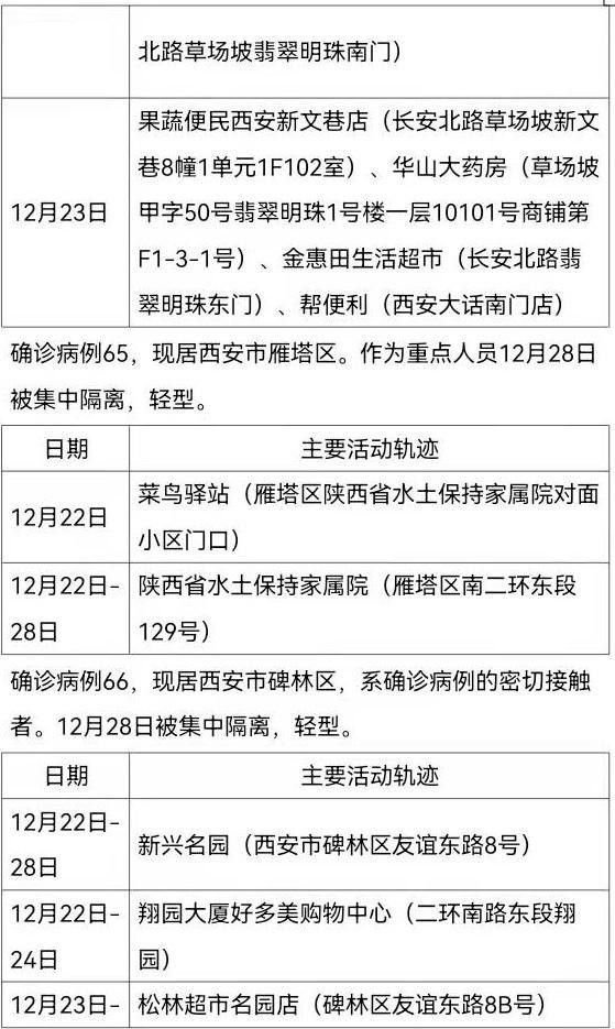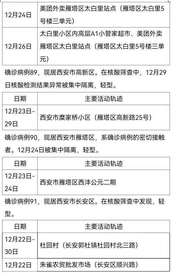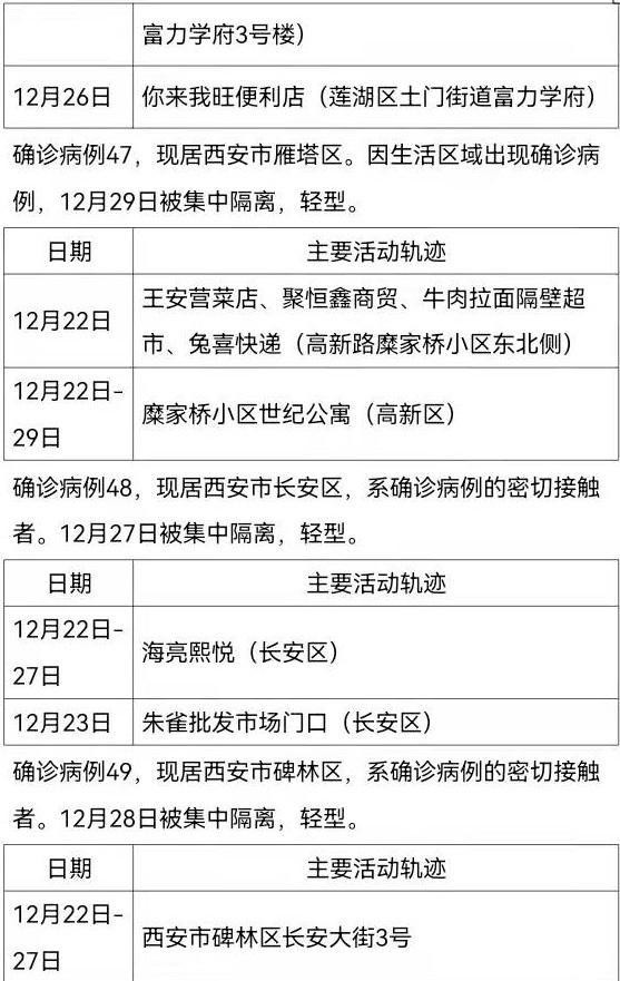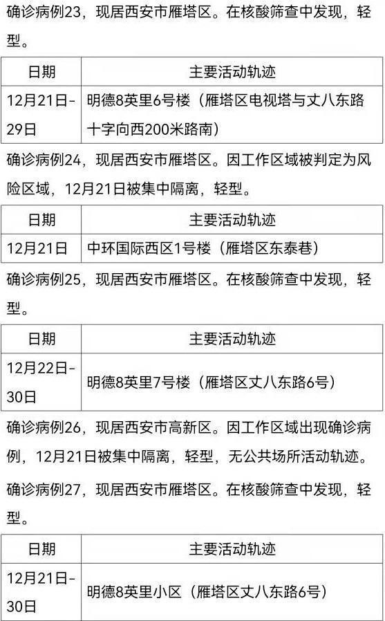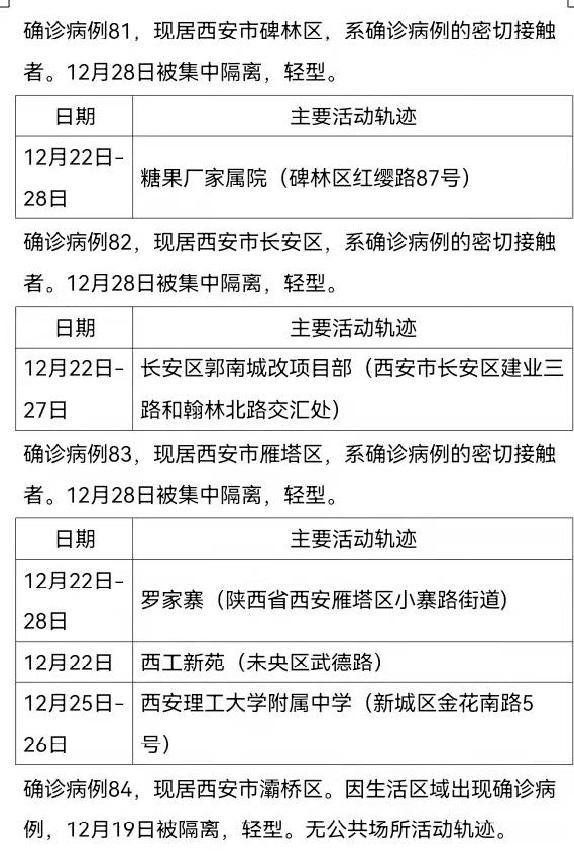 2022年1月1日,西安市公布2021年12月30日0到24时新增161例确诊病例的活动轨迹: