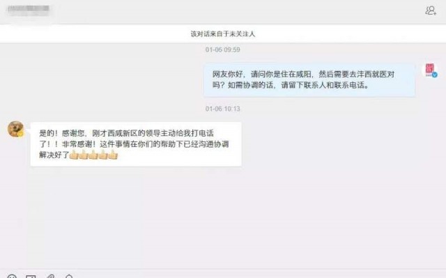 据悉,本轮疫情以来,西咸新区宣传网信部门在不同平台搜集到的求助信息已办理完成200余件。回访中,很多群众都用“想不到”3个字,表达了和原女士同样的感激之情。