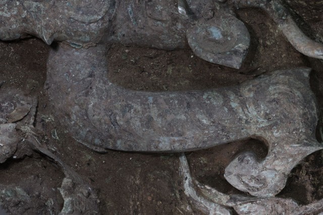 对于这件青铜器的用途,“真不知道是干嘛的”,赵昊说,“一个是这件器物还没有完全发掘暴露出来,另一个是这件器物不是单独的,而是另一件大型器物的一部分。”