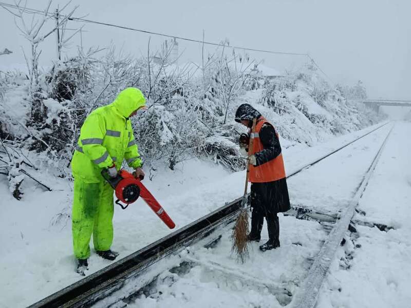合肥工务段及时清除线路上的积雪。 徐培 摄