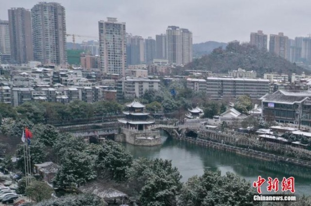 资料图:航拍雪后贵阳景色。 瞿宏伦 摄