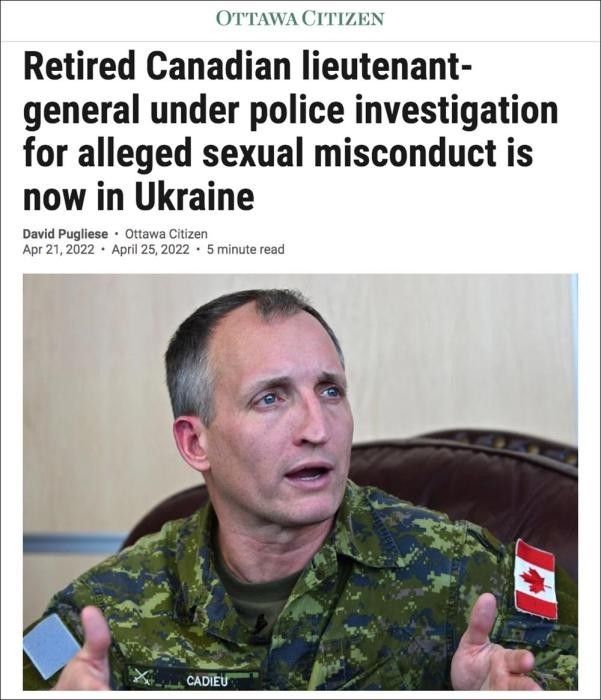 4月21日,《渥太华公民报》报道,加国防部消息人士证实,卡迪厄4月5日退役,已赴乌提供“志愿服务”,一个关注点是,他涉嫌性行为不端的调查。加方试图撇清关系,称其退役后已是普通公民一个,一切都是“个人行为”,军方未提供任何帮助。