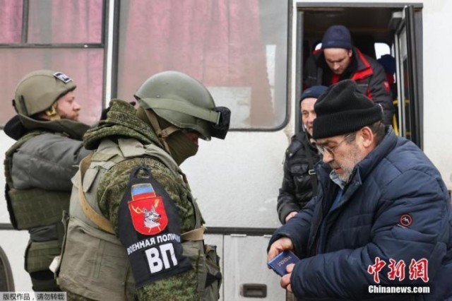 资料图:乌克兰马里乌波尔市的居民从人道主义走廊撤离。
