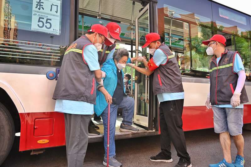 上了转运大巴后,刘雨发现,50座的大巴实际上只坐了约20位转运居民,间隔较大,居民也已经穿戴防疫装备,避免交叉感染。