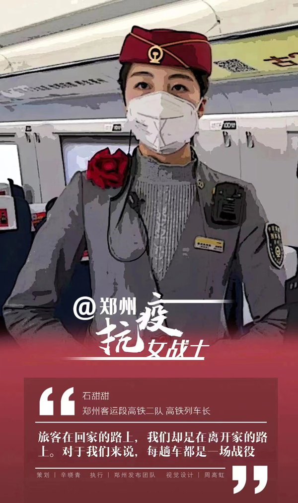 疫情的磨砺,石甜甜快速成长。2020年以来,她多次荣获郑州客运段“三八红旗手”“安全先进个人”等 称号,郑州发布、中原网称之为“郑州抗疫女战士”。 (图文提供:李淑君)