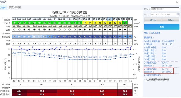监测显示,今晨上海(徐家汇站)32.7℃、上海(宝山站)31.6℃,江苏无锡32.6℃、昆山33.4℃、吴江32.5℃、东山32.2℃以及安徽铜陵31.4℃,均打破当地观测史最低气温的最高纪录。其中,重庆继13日、14日连续打破夜温纪录之后,今晨以33.5℃再度刷新纪录。此外,南京以30.9℃打破当地7月最低气温的最高纪录。