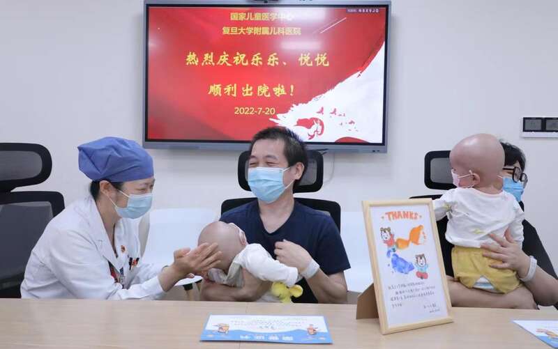 乐乐和悦悦出院庆祝活动现场。(复旦儿科供图)