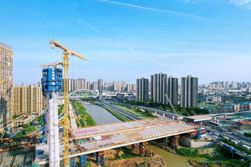 据了解,引江济淮工程金寨南路桥已于7月底完成钢箱梁合龙架设,本次施工为顶推调整就位,实现主桥部分顺利贯通。桥梁结构已经在工厂加工制作好,现场通过顶推拼接。
