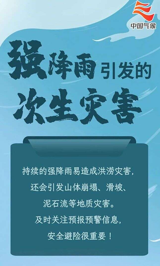 牛若芸介绍,气象次生灾害指的是因气象因素——暴雨、台风引起的其他灾害,如地质灾害、农业灾害。暴雨引发的次生灾害包括山洪、泥石流、滑坡、内涝。暴雨过后,经过大雨的冲刷浸泡,土质变得疏松,有可能引发滑坡、泥石流。