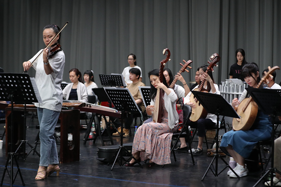 8月26日,北京,乐团在排练。中国煤矿文工团联合国家图书馆、中国艺术研究院,共同打造《古籍里的古曲》系列音乐会。视觉中国供图