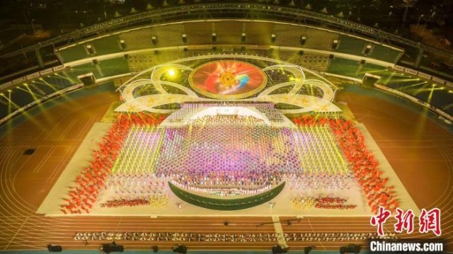 图为广西壮族自治区第十五届运动会开幕式现场航拍图。梁棋摄