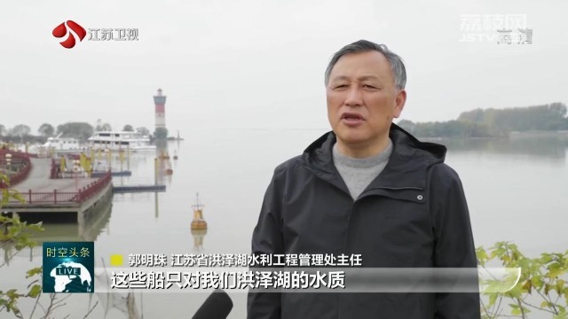 江苏省洪泽湖水利工程管理处主任郭明珠说:“这些船只对我们洪泽湖的水质污染是比较严重的,每年大概有150万吨的污水直接排入洪泽湖。上岸工程实施以后,使我们的局部区域的水质条件得到了很大改善,现在已经改善为三类水。”