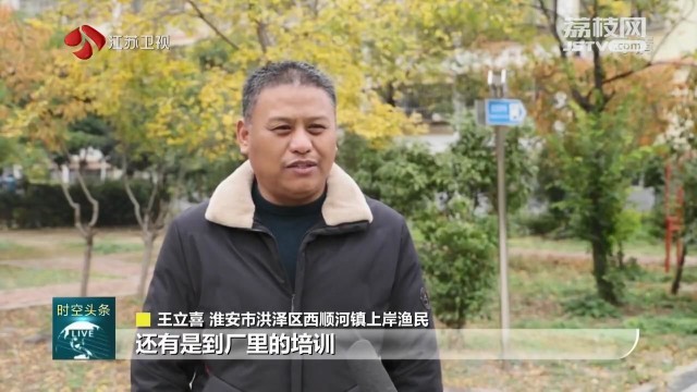 淮安市洪泽区西顺河镇上岸渔民王立喜说:“岸上也有安置房,政府帮我买养老保险和医疗保险,还帮我们组织劳务输出,还有是到厂里的培训。上岸还是挺满意的。”