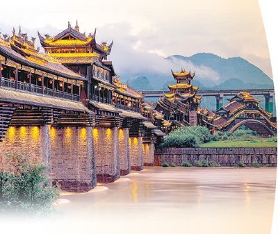 重庆市黔江区濯水古镇风雨廊桥夜景,黄耘主持设计。