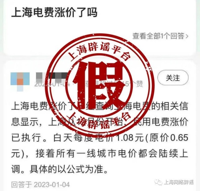 近日,一张“上海电费涨价了吗”的截屏在互联网平台传播。发帖者言之凿凿,“上海电费涨价了”,还表示涨价从去年12月已开始。但是,最近数月上海没有发布过与居民电价调整相关的消息,不少网友因此询问上海辟谣平台,这是真的吗?