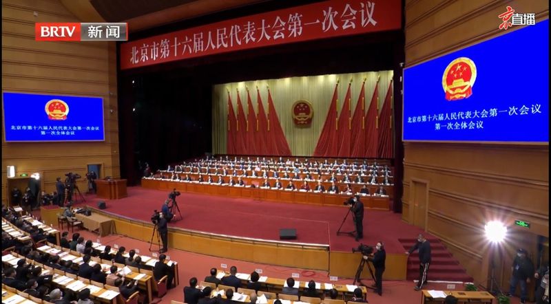 1月15日,北京会议中心,北京市第十六届人民代表大会第一次会议开幕。直播截图