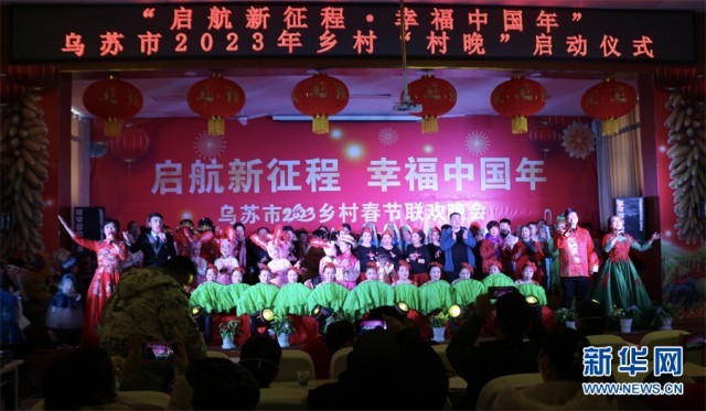 1月14日,“启航新征程,幸福中国年”乌苏市2023年乡村春晚文化惠民活动在西大沟镇开展,各族兄弟姐妹共同上演一出“文化盛宴”。
