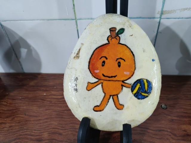 学生画的石头画上,也有排球。董小红 摄