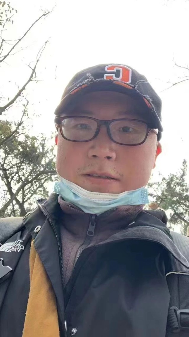 头戴帽子的何斌