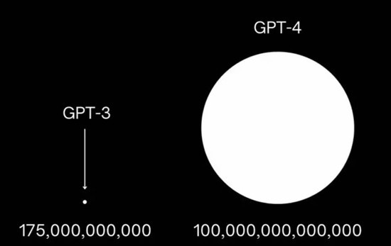 和第四代ChatGPT的算力来比(用一个圆来代表),当前的第三代ChatGPT算力只是一个小黑点,就像太阳面前渺小的地球。受访者供图