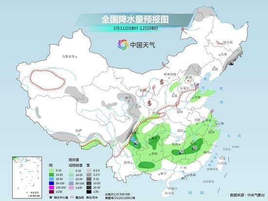寒潮影响,北方降雪天气增多,南方以雨为主,江南部分地区累计降雨量可超过50毫米,上述地区需注意防范雨雪导致的道路湿滑等对交通出行的不利影响。