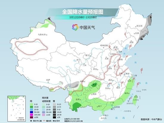 明天,黑龙江东部、吉林东部、新疆北疆北部等地部分地区有小到中雪或雨夹雪,局地大雪。四川南部、重庆中南部、云南大部、贵州西部和北部、广西大部、广东大部、福建东部、浙江东部、台湾岛等地部分地区有小雨,其中,重庆中西部、云南中南部等地部分地区有中雨。