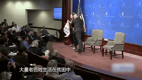 ▲ 2023年2月,美国国会共和党参议员乔希·霍利发表演讲,恶意解读中国政策,大肆渲染“中国威胁论”,一名抗议者上台高呼“中国不是我们的敌人”。