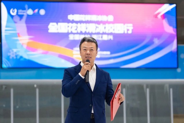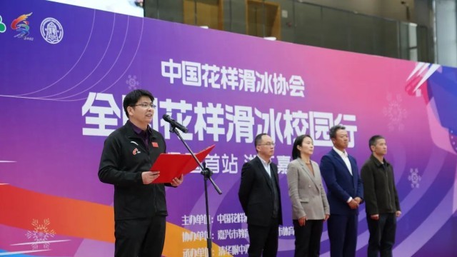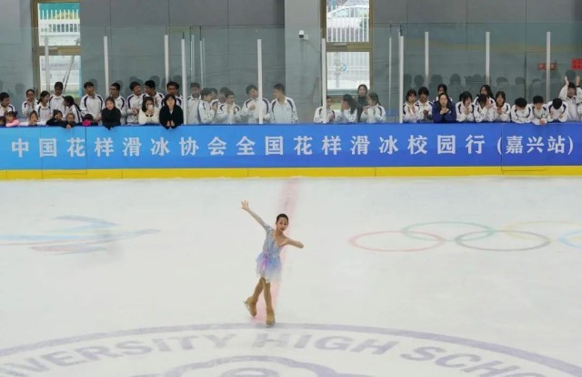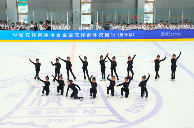 解礁在致辞中说:“‘无体育,不清华!’全国花样滑冰校园行首站活动落地嘉兴,将进一步激发学生们参与冰雪运动的热情,让学生们在运动中塑造品格、增强体质。学校也会继续发扬北京冬奥精神,引领带动冰雪运动进校园,让更多学生在冰雪运动中体验乐趣,收获成长。”
