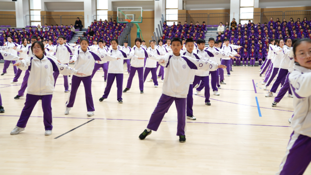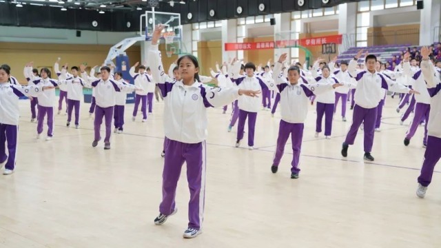 学生们展示花样滑冰广播操学练成果