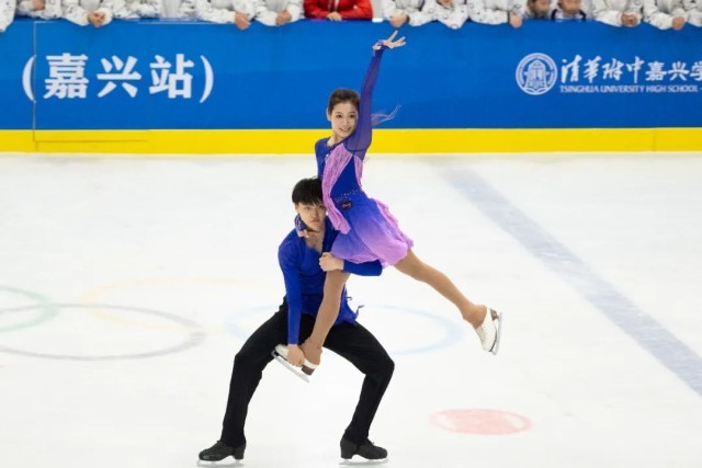 在随后进行的冰上展演及互动环节中,清华附中嘉兴学校花样滑冰队、嘉兴本地的花样滑冰运动员、全国花样滑冰锦标赛女子单人滑季军佟瑞宸、北京市青少年锦标赛少年甲组冠军张瑞洋、北京舞蹈学院高水平运动队冰舞运动员王子璇/费文润依次带来了精彩的表演。