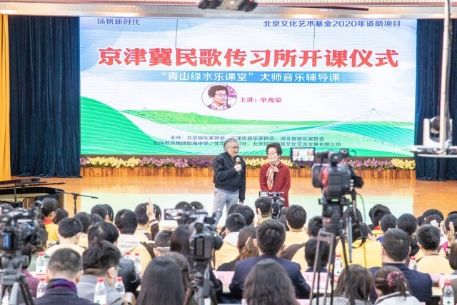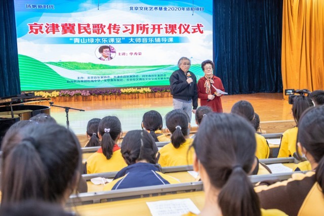 “京津冀民歌传习所”设立在有26年办学经验的全日制民办完全中学北京市丰台区怡海中学,开课仪式上举行了“青山绿水乐课堂”大师音乐辅导课的特别活动。“京津冀民歌传习所”歌唱家们走进校园,在学生们的心中播撒民歌艺术的种子,普及民族文化艺术。传习所是新时代民歌教育推广和创新的尝试,也拉进了民歌与青少年的距离,让学生以全新的方式理解民歌文化,承担起民族文化传承的重任。