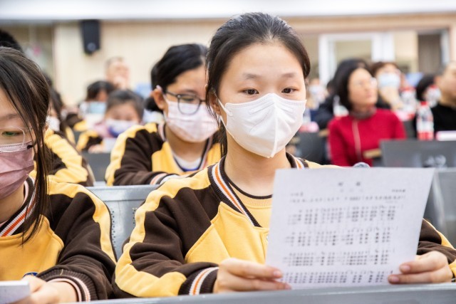 在怡海中学阶梯教室里,“京津冀民歌传习所”揭牌仪式正在举行,随后,著名歌唱家、中央音乐学院教授单秀荣老师亲授第一课,与以往授课方式不同,单老师现场演唱各地民歌,以最直接的方式让学生们体会到民歌的魅力。“小白菜这首歌讲述的是一个没有妈妈孩子的内心独白,你听这旋律是带着悲情的。”单秀荣在讲解后便唱起来,一瞬间把大家的情感带入到悲情的情绪之中。