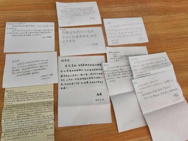 活动还专门为在京学子们准备了神秘惊喜,惠州一中党委书记李海媚带来了一封封来自母校班主任老师亲手写下的寄语,让众多学子惊喜之余潸然落泪,纷纷提笔给老师们回信。蒋亚琼老师给她的学生李畅宇的寄语非常的暖心,“畅宇,你这个‘油腔滑调’的学生,老师很怀念与你说笑打趣的高三时光。老师希望你能成为新时代有理想、有担当、有能力、有家国情怀的新青年!”字里行间透露着老师对自己学生的自豪感。很多学生迫不及待的给老师们回信, “余军老师,在千里之外的北京收到您的教诲,我无比激动,我一直铭记您的教诲‘铁肩担道义,潮头勇担当’,在大学里积极上进,努力学习,力争上游,不给您丢脸。”学生欧凌风回信说。