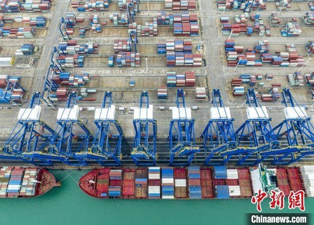 资料图:航拍海南洋浦国际集装箱码头。 骆云飞 摄