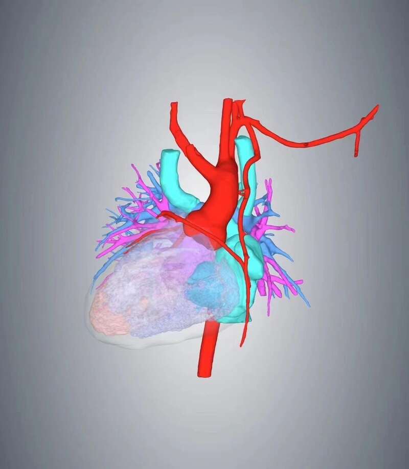 接到这位特殊的病人,医院即刻安排心脏彩超,发现小康心衰严重,同时因为肺压的增高导致缺氧,情况十分危急。医院随即组织全院多学科会诊,影像科利用三维重建技术给小康肺血管和心脏进行重建,更直观、多角度观察病人情况,同时心外科及时进行肺血管造影及肺血管压力测试,证实小康做心脏移植手术较为合适。
