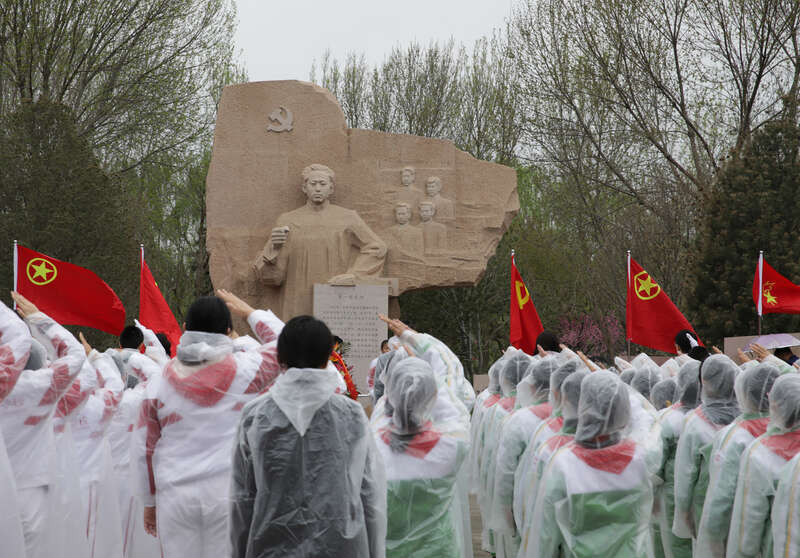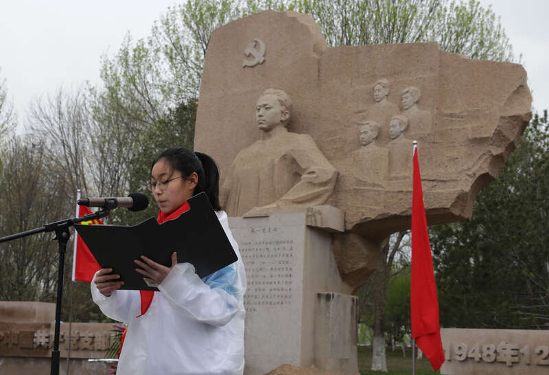 4月4日,北京城市副中心大运河森林公园周文彬广场,2023年首都少先队员清明祭英烈活动暨少年先锋岗活动启动仪式现场。中青报·中青网记者 陈剑/摄