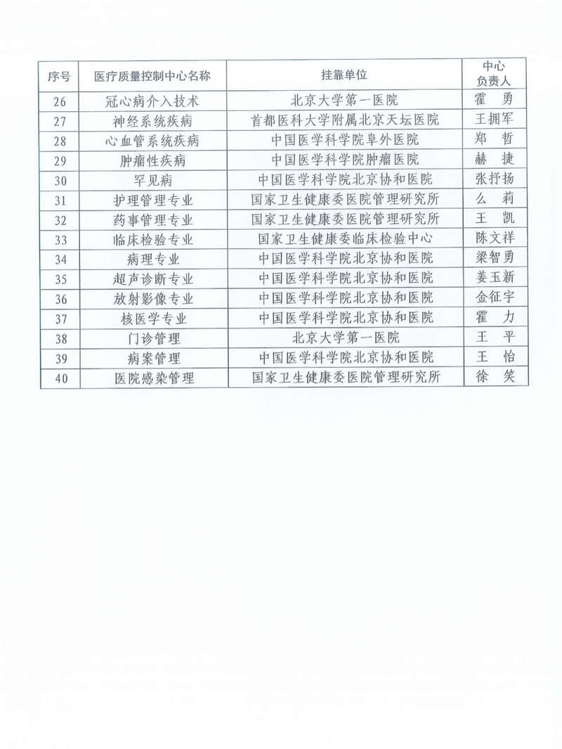 中国青年报客户端讯(中青报·中青网记者 刘昶荣)4月4日,国家卫生健康委官方网站公布了40个国家级医疗质量控制中心名单,各中心以不同医学专业命名,包括挂靠在北京医院的呼吸内科专业、挂靠在北京大学第三医院的产科专业、挂靠在北京协和医院的罕见病专业等。