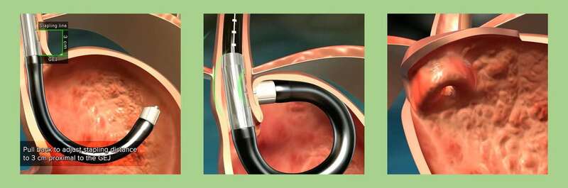 这项名叫“内镜下胃底折叠术”的新技术,从口腔进入,经过食道,无需切口,通过三个或三个以上的钉合点,将胃底部分钉合在食管下端,重建胃食管阀瓣,建立阻止胃食管反流的有效屏障。4月8日一早,医院姚玮艳主任团队为老钱实施了手术。