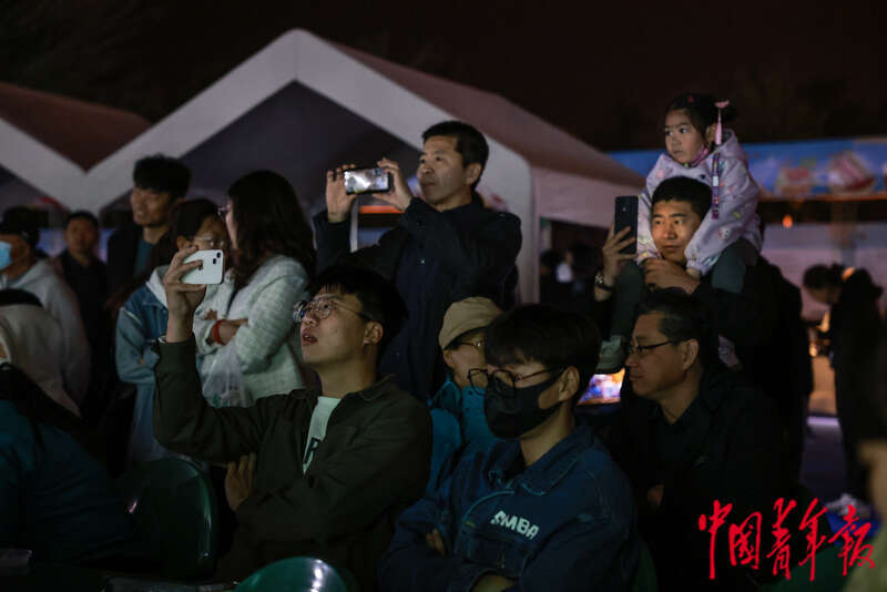 4月28日,山东荣成,荣成市体育中心,人们在观看美食节现场的演出。中青报·中青网记者 曲俊燕/摄